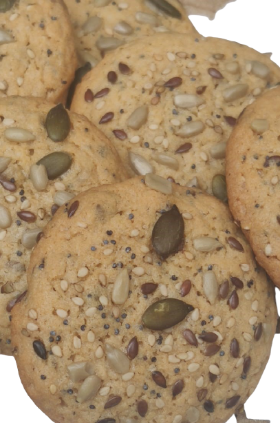 Delicioses cookies de Llavors elaborades artesanalment. Amb ingredients de primera qualitat. Decorades amb Llavors. Presentades en paquets de 6 unitats.