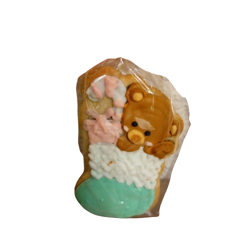 Galeta artesana decorada a mà amb glassa real amb forma de simpàtic Osset de Peluix sortint d’un mitjó. Ideal per a regalar per les festes de Nadal.