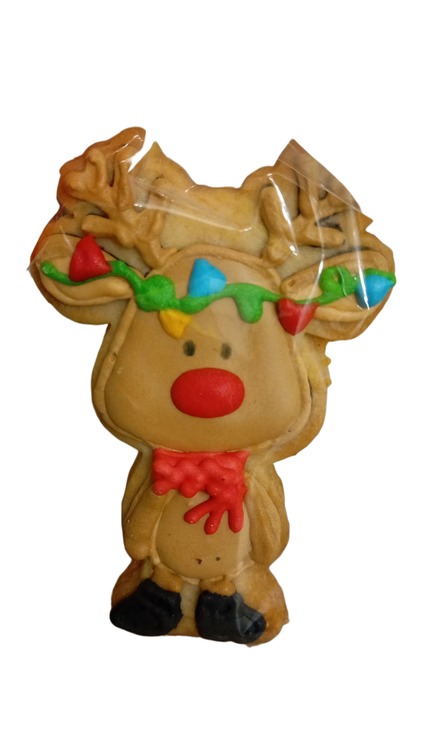 Galeta artesana decorada amb glassa real, amb forma de Ren de Santa Claus. Un detall festiu perfecte per regalar durant les festes.